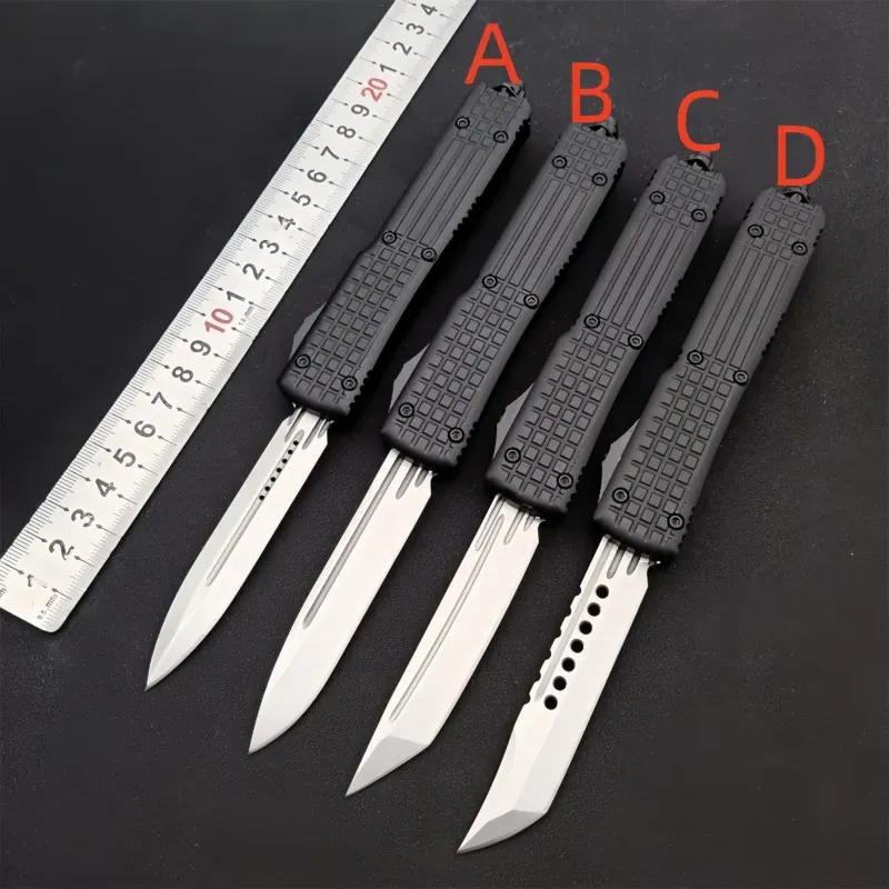 Kleines, gerades Springmesser der Marke Navy mit schwarzem Griff,OTF