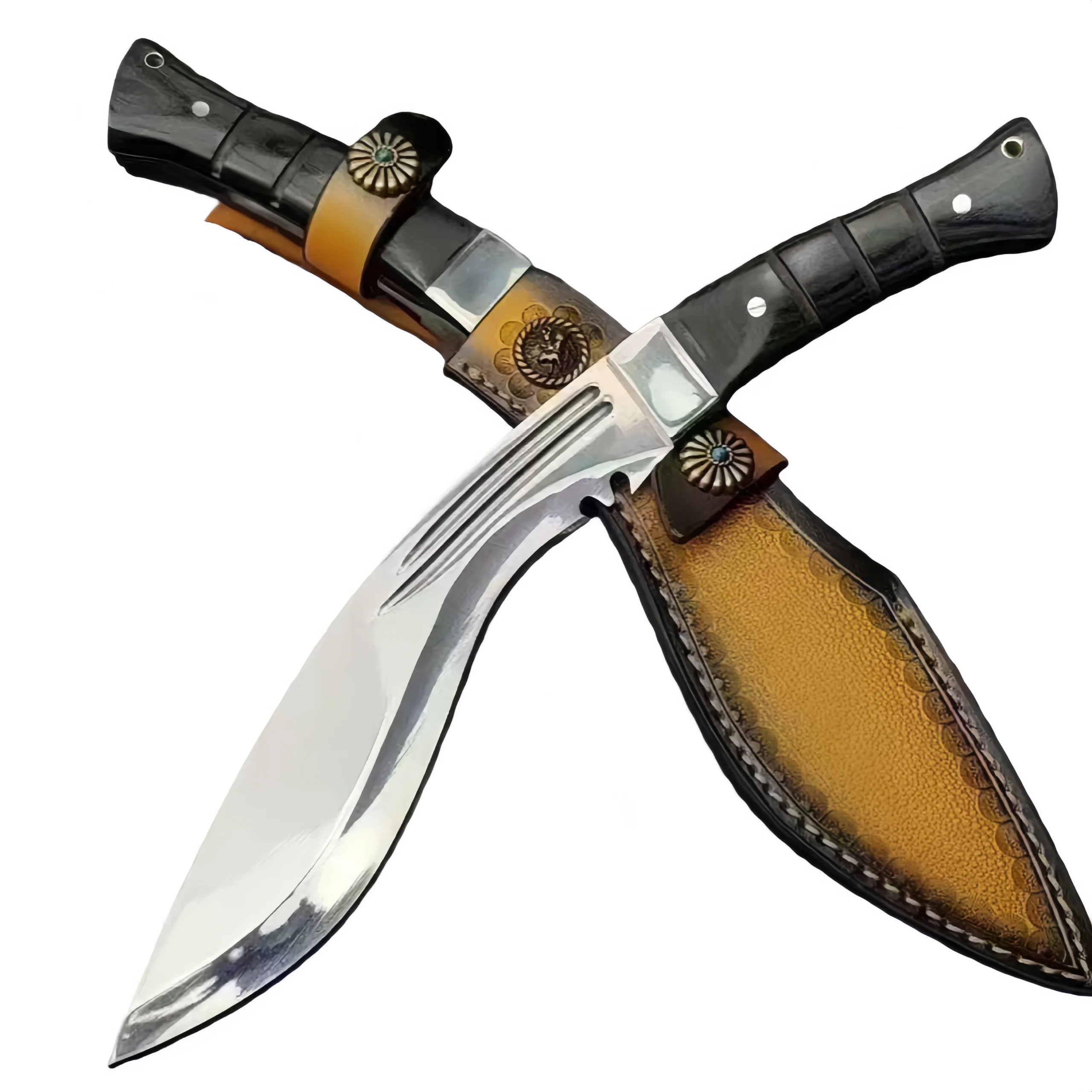 Messerscheide aus einteiligem 9Cr18Mov-Stahl mit handgeprgtem Rindslederholster,Kukri Messer